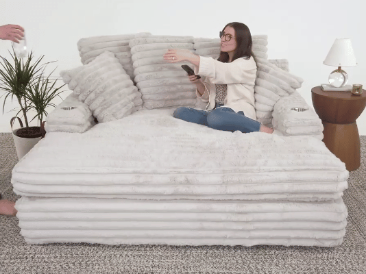 The name says it all!! This chaise is perfect to nestle into with a book or a cup of coffee, or for a nap. It’s also nice and roomy, so you can spread out as much as you want. It’s even sizable enough for two people to sit together and watch TV.