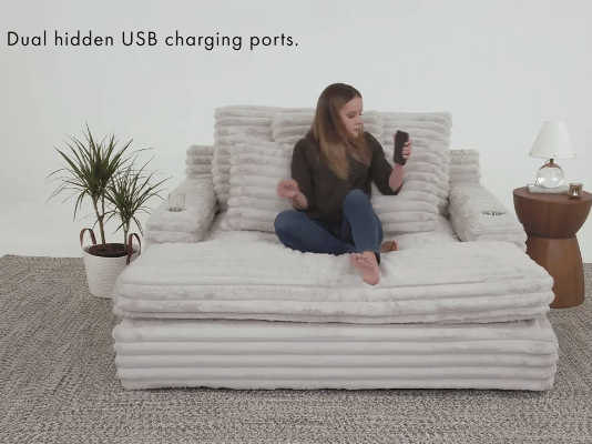 Home / Sofa / Winter Sale - Nestle Chaise Lounge With Dual Cupholders And Charging Ports